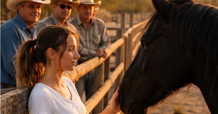 Kada se približila ograđenom prostoru, masa je počela da šapuće. Ljudi su očekivali spektakl. Konj je već bio na ivici — napet, besan, spreman da se otrgne. Kao da je osećao da će ga ponovo pokušati slomiti.