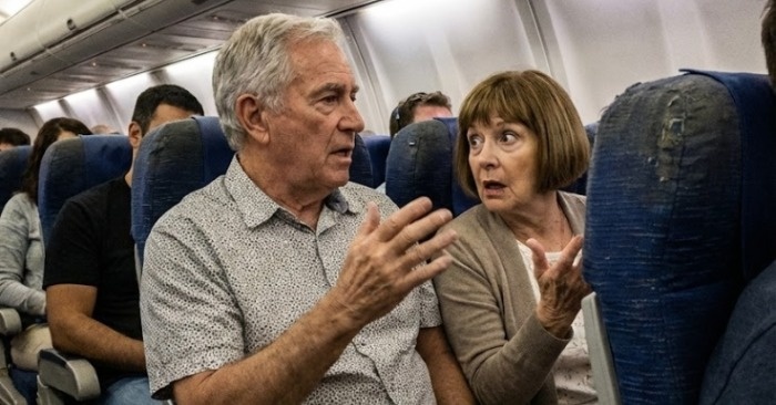 „Ovo ne može biti ozbiljno“, grmio je muškarac. „Ovo su naši sedišta?“ Njegov ton je bio oštar, kao da je besan na ceo svet.
